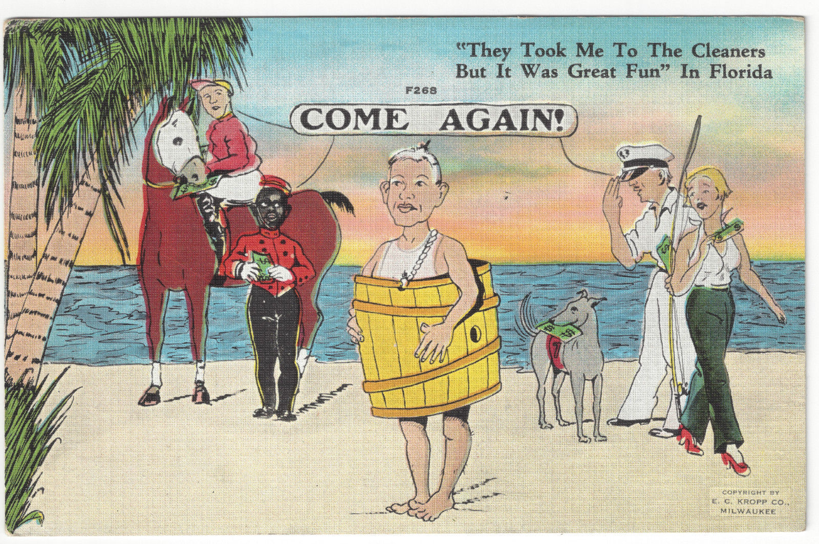 Black Americana Postcard They Took Me To The Cleaners Black Bell Hop Boy Beach