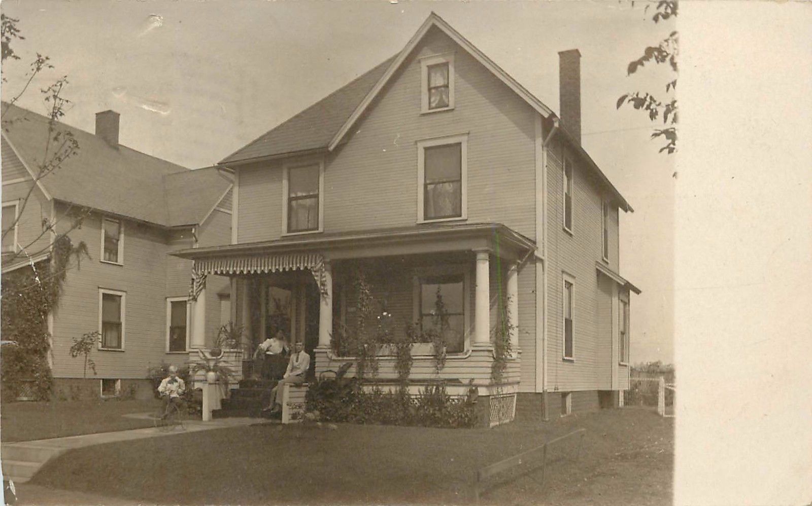 c1907 RPPC Postcard Family, Boy on Tricycle, Godfrey House in Canton OH Stark Co