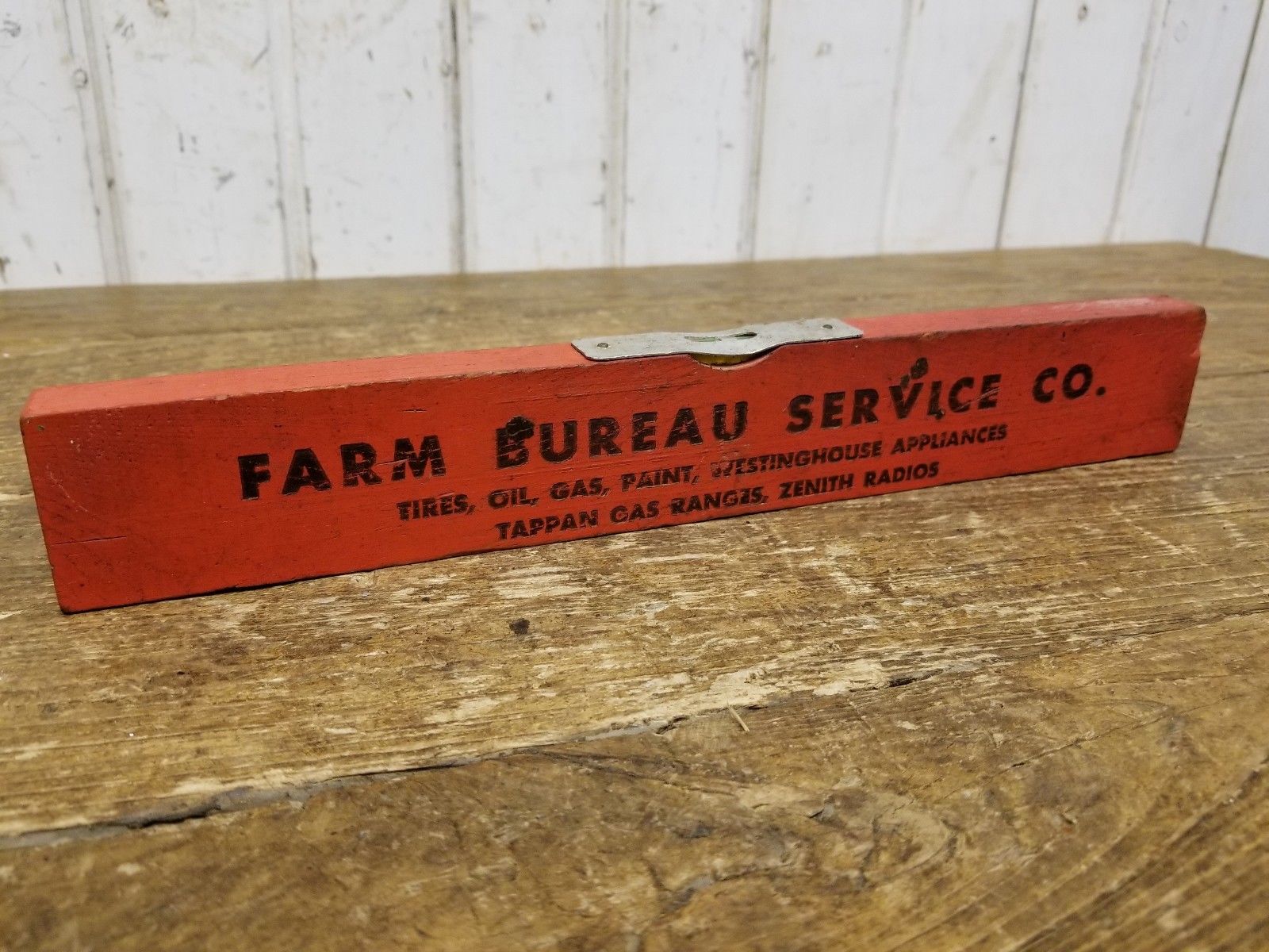 Vintage Wooden Farm Bureau North English IA Advertising Level ~ Barn Tool Decor