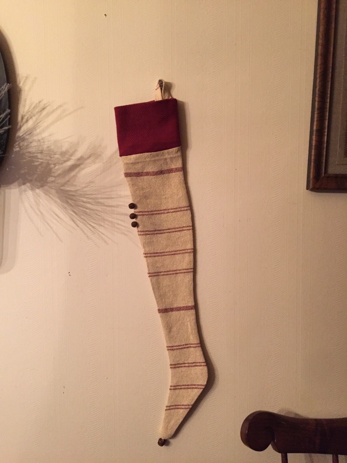 Title (ebay affiliate link): Primitive Christmas Stocking Family Heirloom Weaver Off White With Red Stripes
