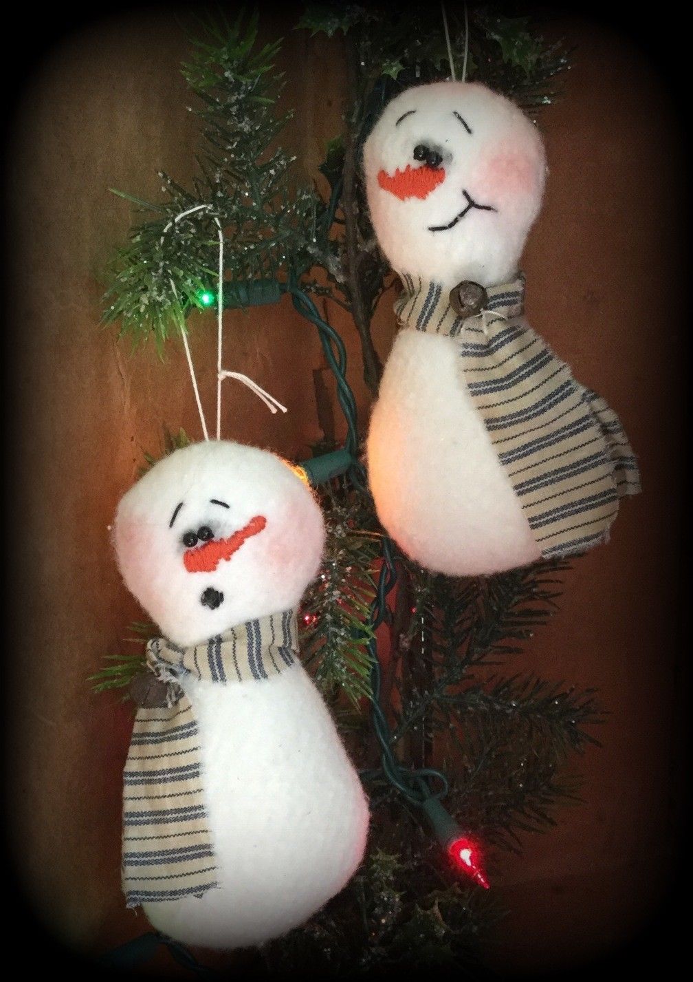 Title (ebay affiliate link): Handmade Primitive Snowman Ornie~Tucks set of 2 blue Ticking Black Friday SALE