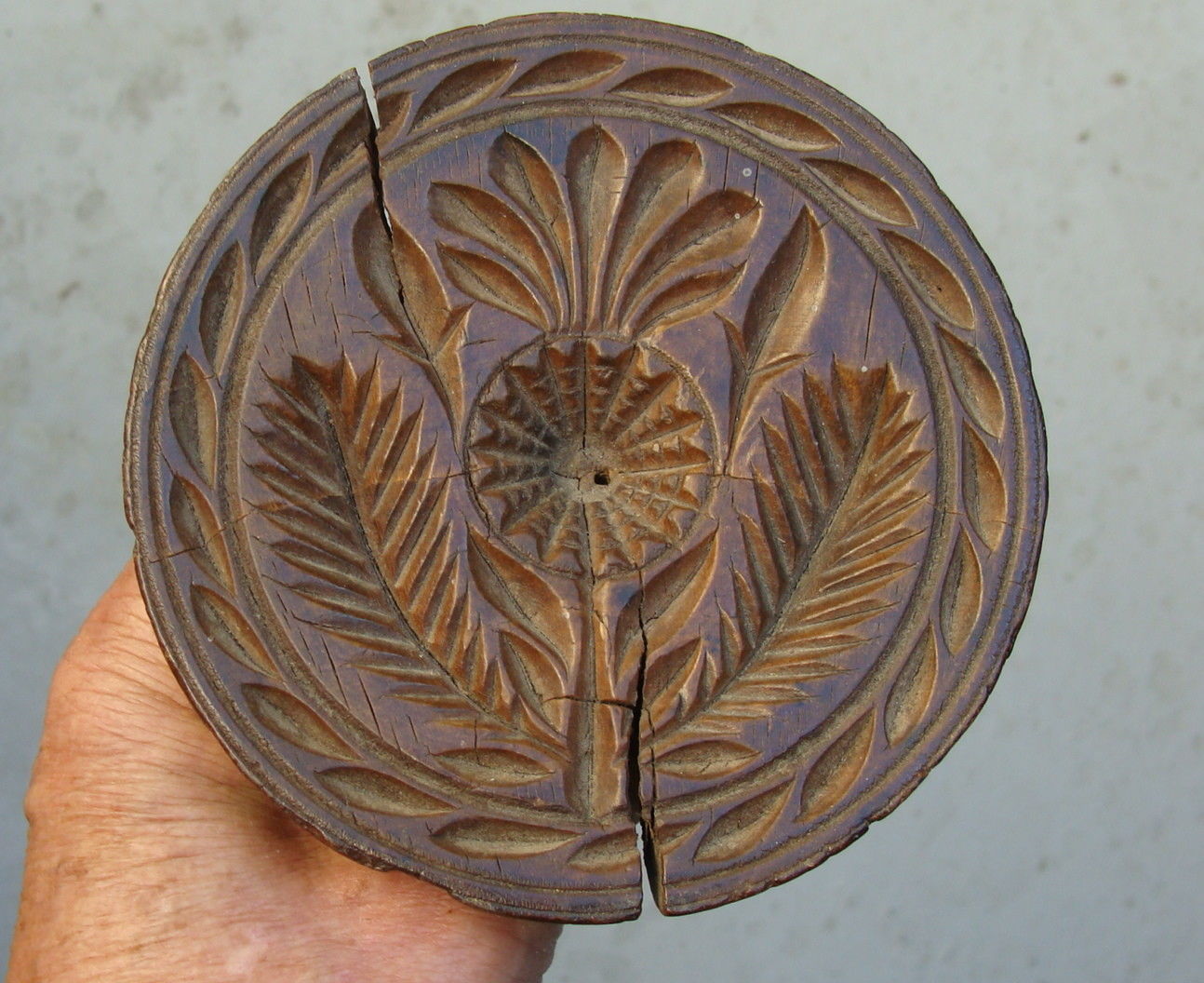 Title (ebay affiliate link): early 19th C hand carved Penna butter print, Thistle ? **