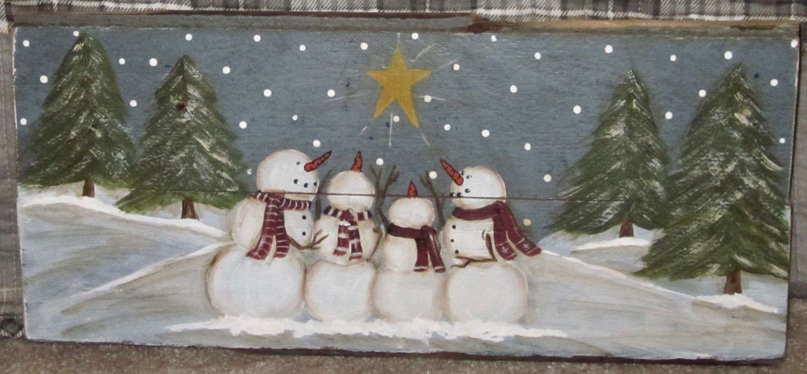 Title (ebay affiliate link): *~*PRIMITIVE*~* HP FOLK ART PRIM SNOWMEN * WISH UPON A STAR * OLD RECLAIMED WOOD