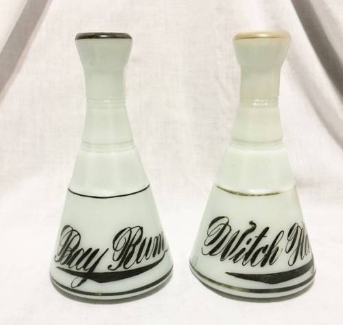 Title (ebay affiliate link): Antique Milk Glass Witch Hazel & Bay Rum Barber Bottles Circa: Early 1900s