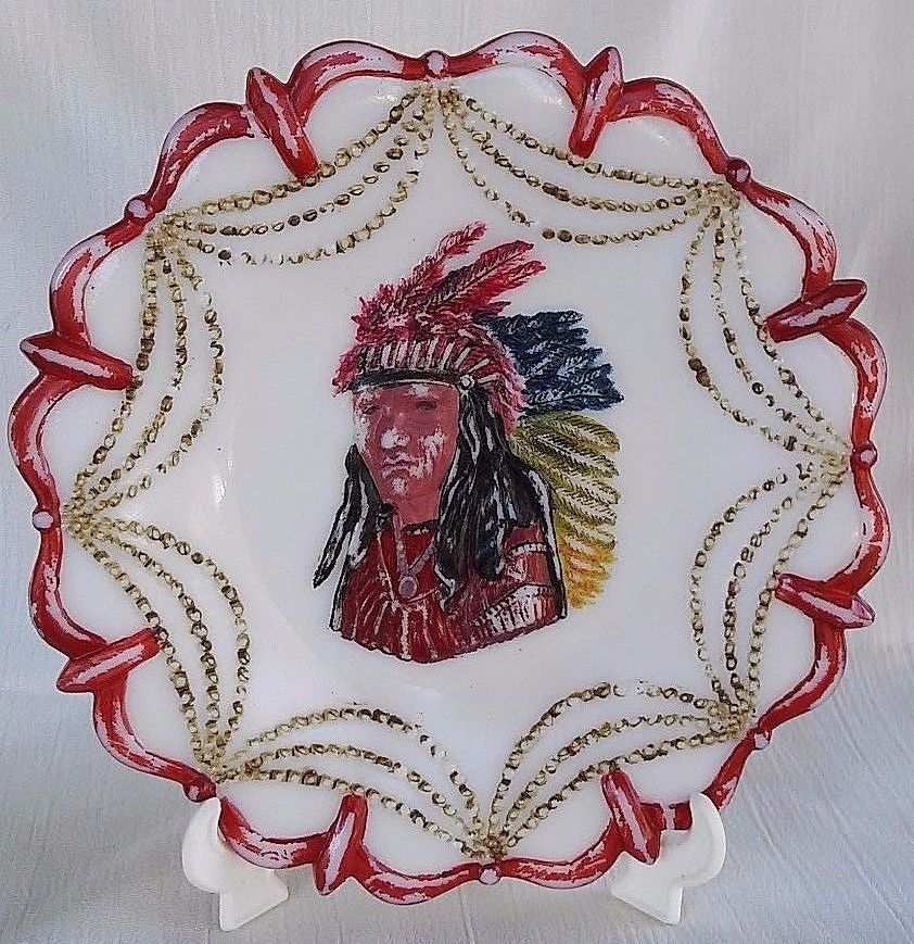 Title (ebay affiliate link): WHITE MILK GLASS INDIAN BEADED LOOP PLATE (WESTMORELAND SPECIALTY CO.)