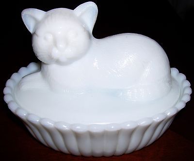 Title (ebay affiliate link): VINTAGE WESTMORELAND WHITE MILK GLASS KITTEN CAT ON A NEST BASKET