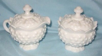 Title (ebay affiliate link): Fenton Milk Glass Hobnail Crown Top Cream Creamer and Sugar with Lids