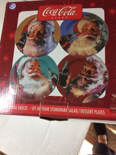 Title (ebay affiliate link): NEW SET OF 4 COCA COLA 8" SANTA CLAUS SALAD / DESSERT STONEWARE PLATES BY SAKURA