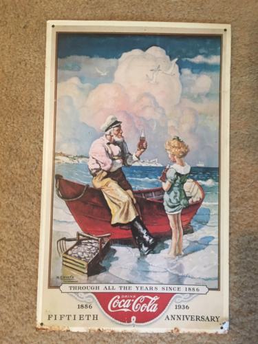 Title (ebay affiliate link): Vintage COCA COLA 50th Anniversary Tin Ad Sign COKE 1986 Soda Pop
