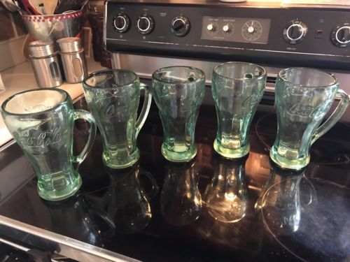 Title (ebay affiliate link): 5 Libbey Green Tinted Coca-Cola Glass Mugs Coca- Cola Retro Mugs 14.5oz