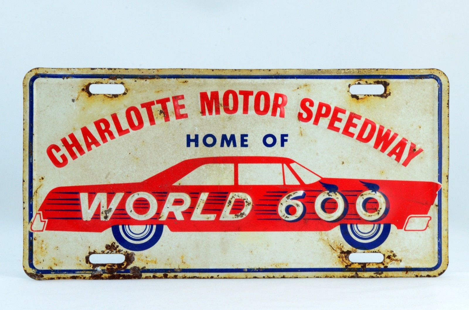 Title (ebay affiliate link): Rare 1960s Charlotte Motor Speedway Home of World 600 Tin License Plate Sign