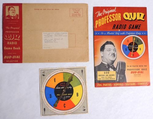 Title (ebay affiliate link): P897 Vintage: ORIGINAL PROFESSOR QUIZ RADIO GAME w/ Mailer & Duo Dial (1939) [