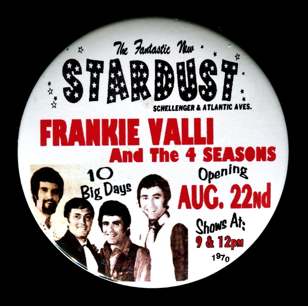 Title (ebay affiliate link): 1970 FRANKIE VALLI 3" PINBACK BUTTON STARDUST CLUB Artist Rendition THouse 2016