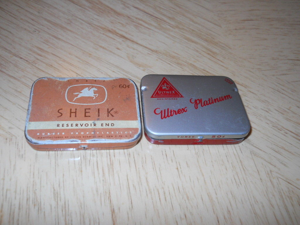 Title (ebay affiliate link): VINTAGE ''SHEIK'' AND ''ULTREX PLATINUM'' CONDOM TINS, ONE WITH CONTENTS