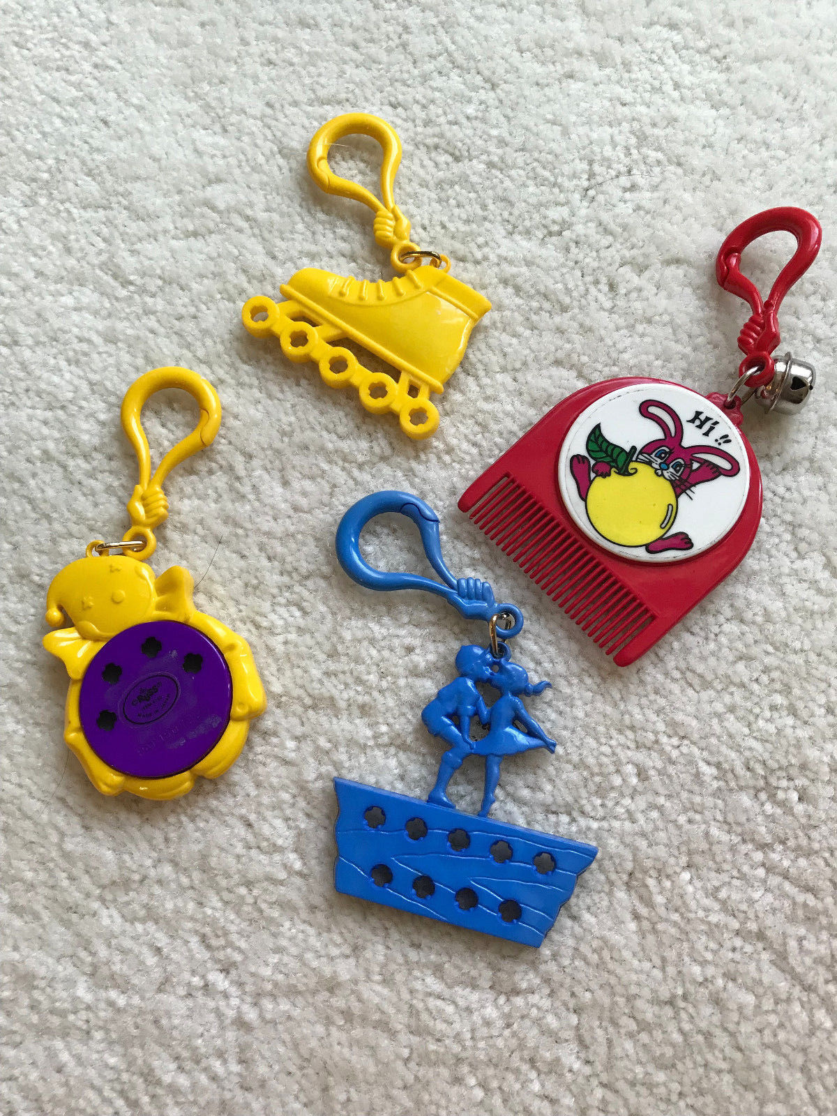 LOT OF FOUR LARGER 1980''S BELL CLIP PLASTIC 80''S TOY CHARM FOR NECKLACES!
