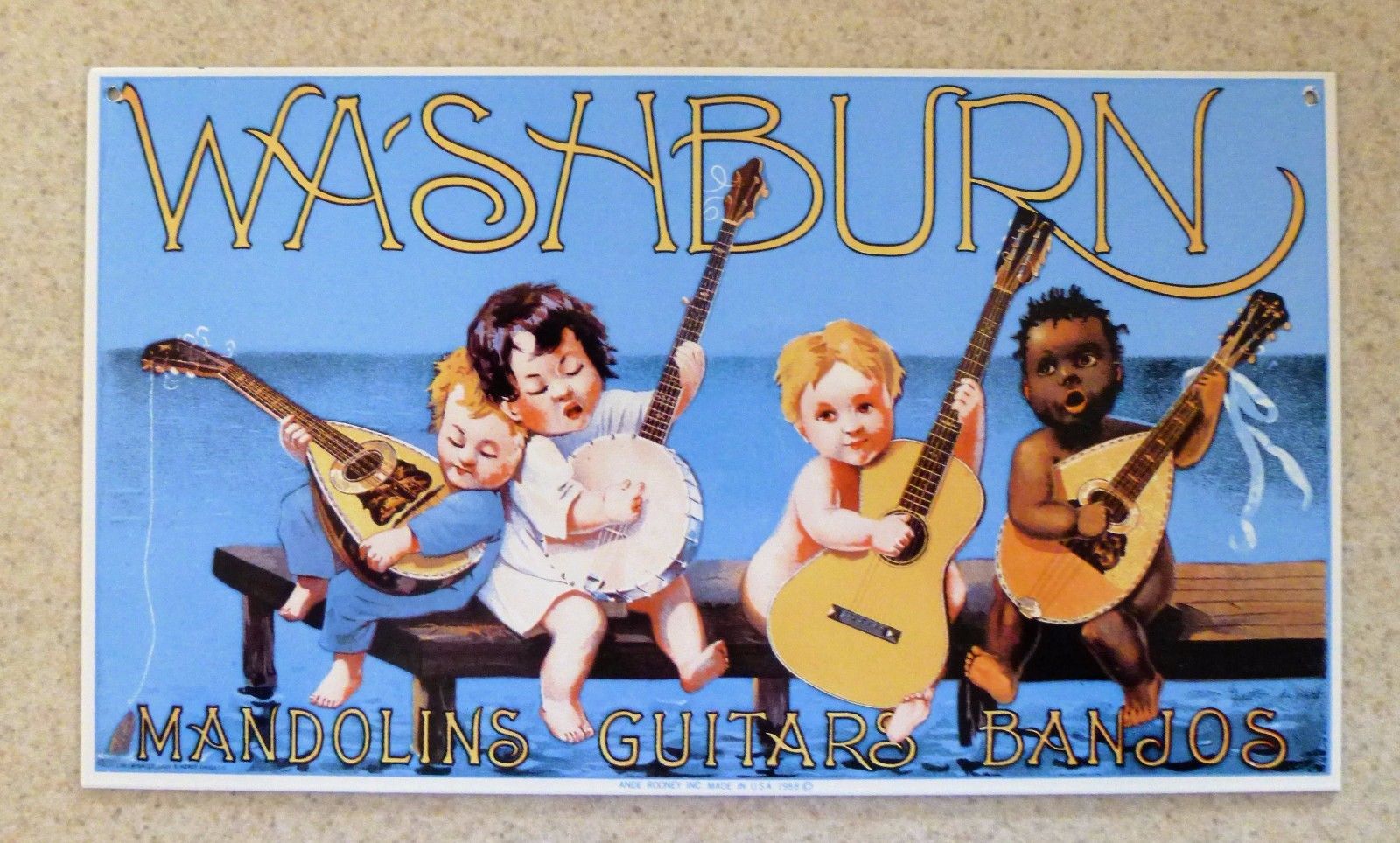 Title (ebay affiliate link): Ande Rooney Porcelain Enameled Sign - Washburn Mandolins Guitars Banjos -EUC