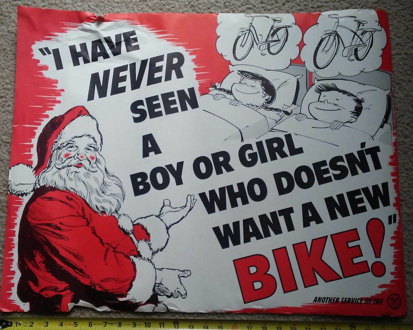 Title (ebay affiliate link): Vintage bike store poster santa store display Christmas sign bicycle