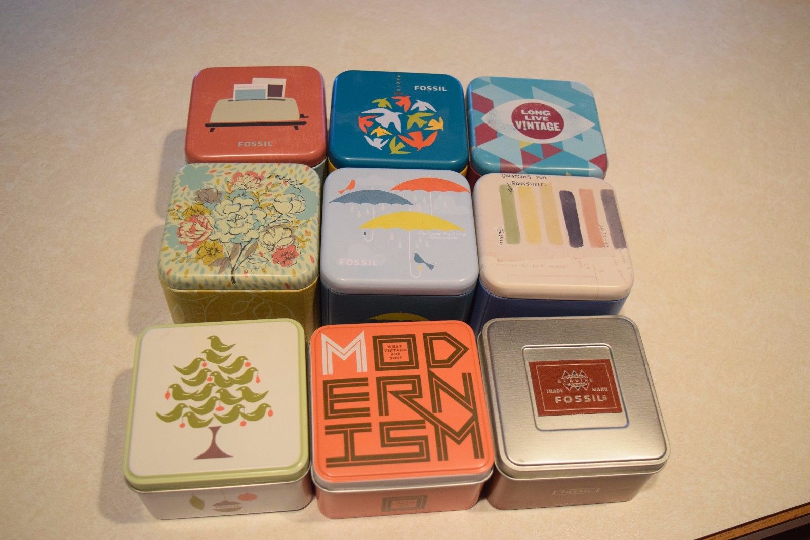 Title (ebay affiliate link): Lot Of 9 Fossil Watch Collectible Tins Boxes ONLY pre-owned condition