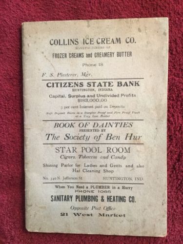 1908 Advertising Recipe Booklet Huntington Indiana