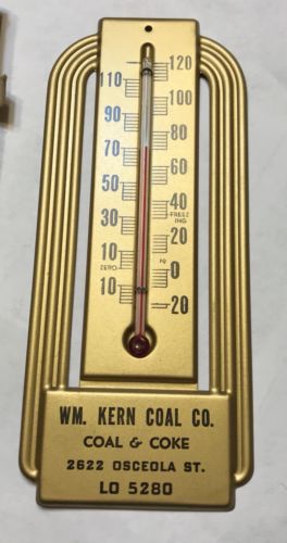 Vintage Metal Adv Thermometer-Wm Kern Coal Co-Coal & Coke-unused W/box