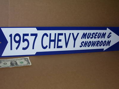 Title (ebay affiliate link): 1957 CHEVY Museum & Showroom == White on Blue --- SIGN