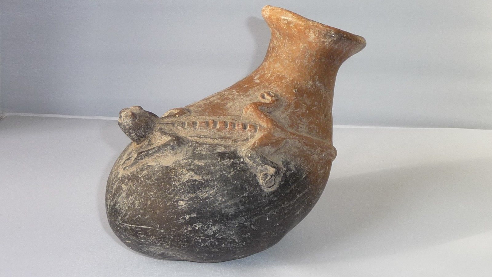 Title (ebay affiliate link): Fine Antique Pre Columbian Pottery Moulded Lizard Vessel