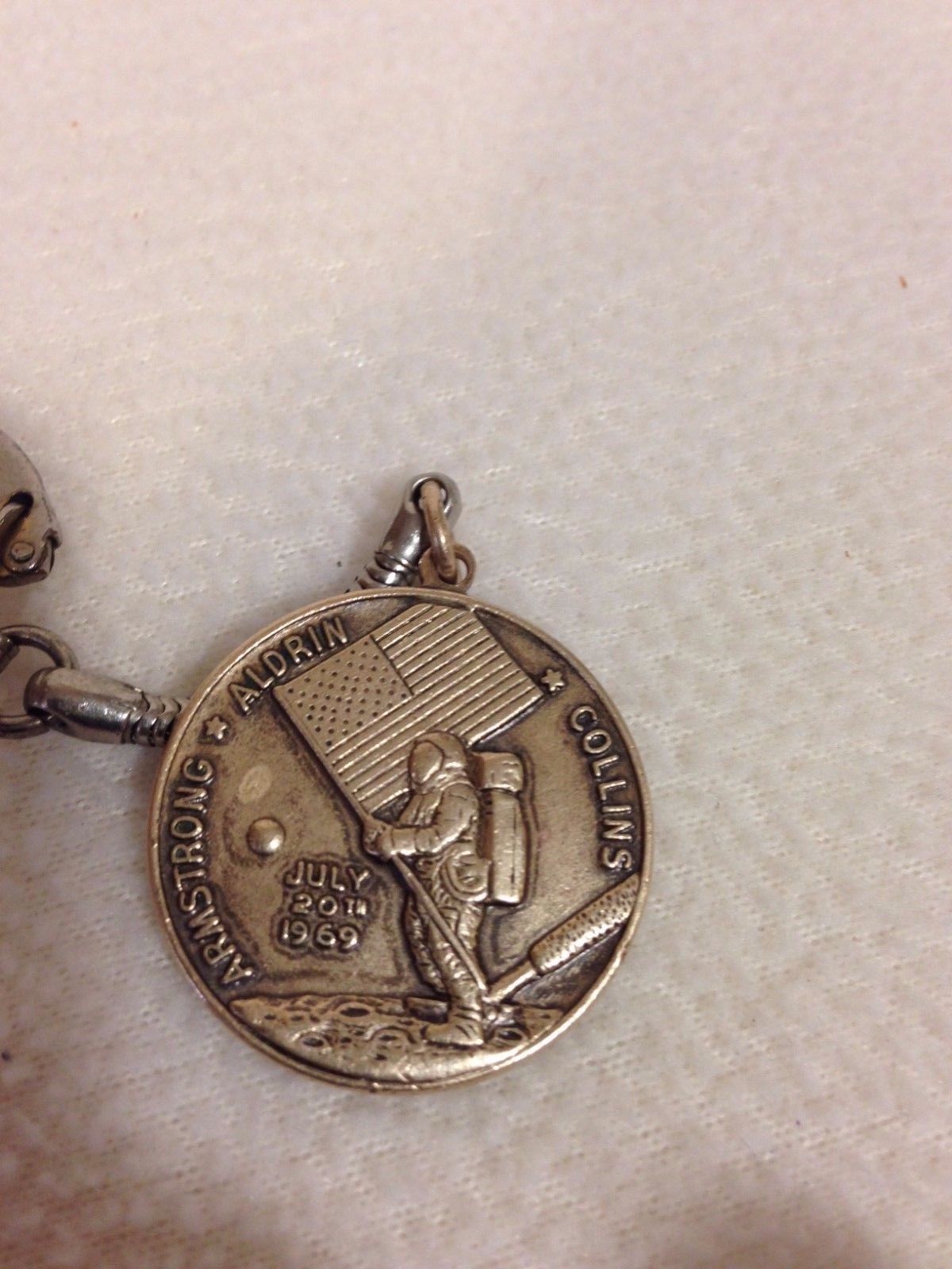 Title (ebay affiliate link): Vintage Apollo 1969 Moon Landing Coin Keychain Armstrong Aldrin Collins
