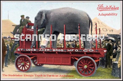 c1908 Studebaker Electric truck orig post card elephant
