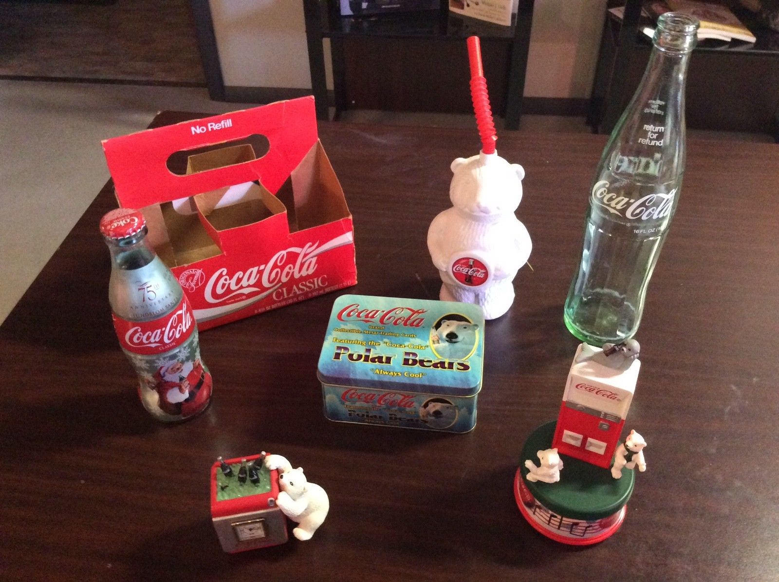 Title (ebay affiliate link): Lot of Coca-Cola Collectibles Bear Cup Music Bears and Seal Bottles Metal Cards