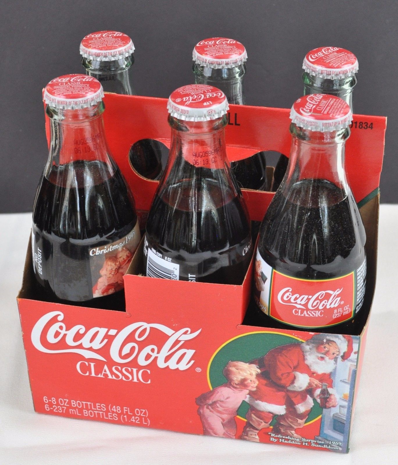 Title (ebay affiliate link): (6 pack) Coke Classic Bottles Christmas Santa Edition 1995