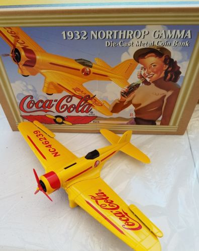 Title (ebay affiliate link): COCA-COLA 1932 NORTHROP GAMMA DIE CAST COIN BANK NRFB