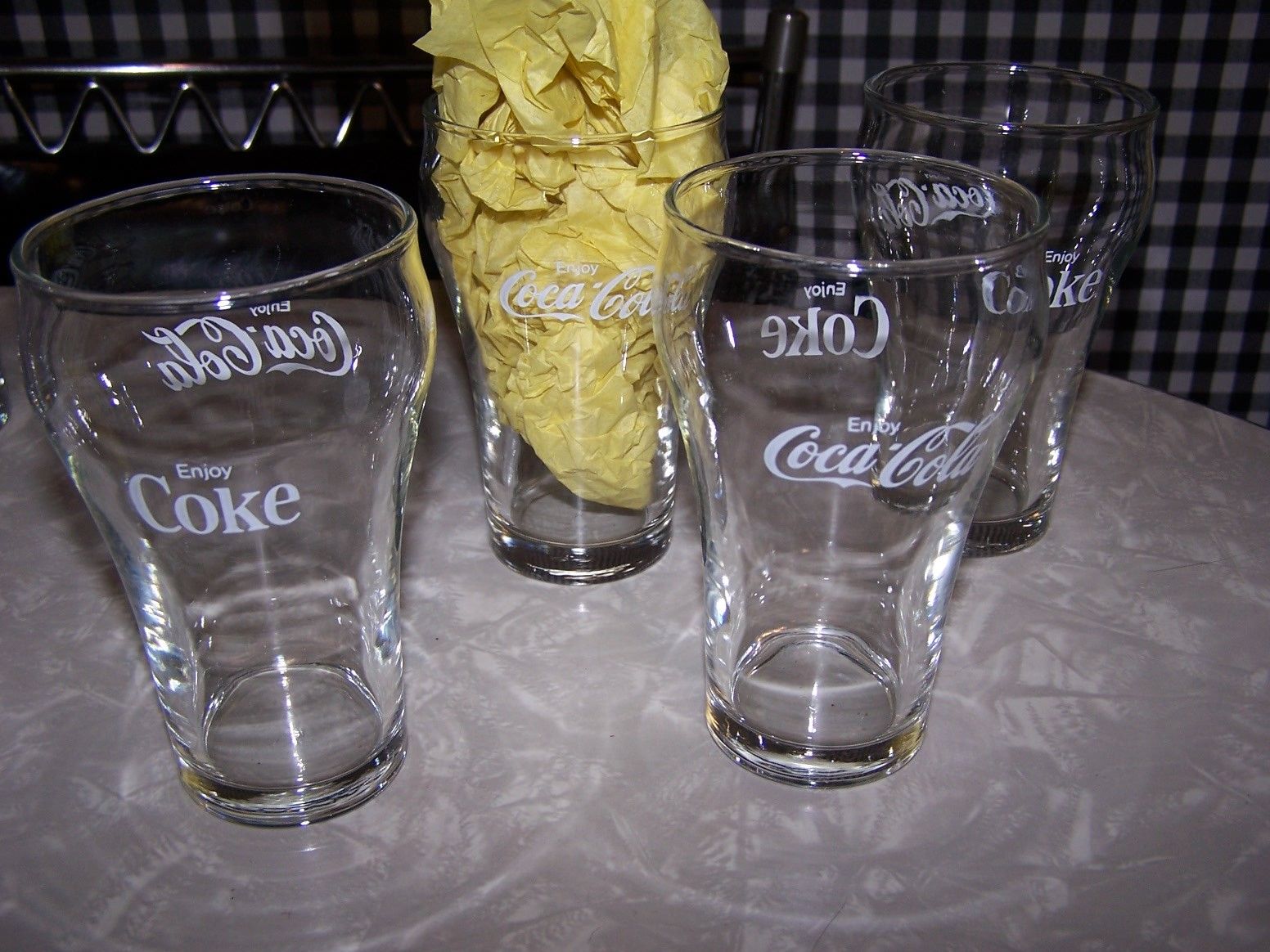 Title (ebay affiliate link): Set of 4 Enjoy Coca~Cola COKE Glasses ~ 5" Tall ~ Clear with White Lettering ~