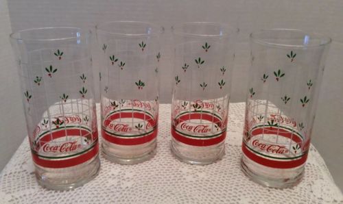 Title (ebay affiliate link): COCA-COLA Set of 4 Holly Christmas Holiday Glasses Tumblers