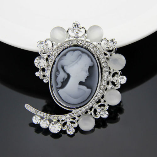 Title (ebay affiliate link): Antique Cameo White Rhinestones Grey Opal Retro Style Party Wedding Brooch Pin