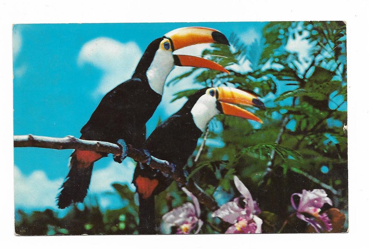 Vintage Florida Chrome Postcard Toco Toucans Orchids Naples Caribbean Gardens