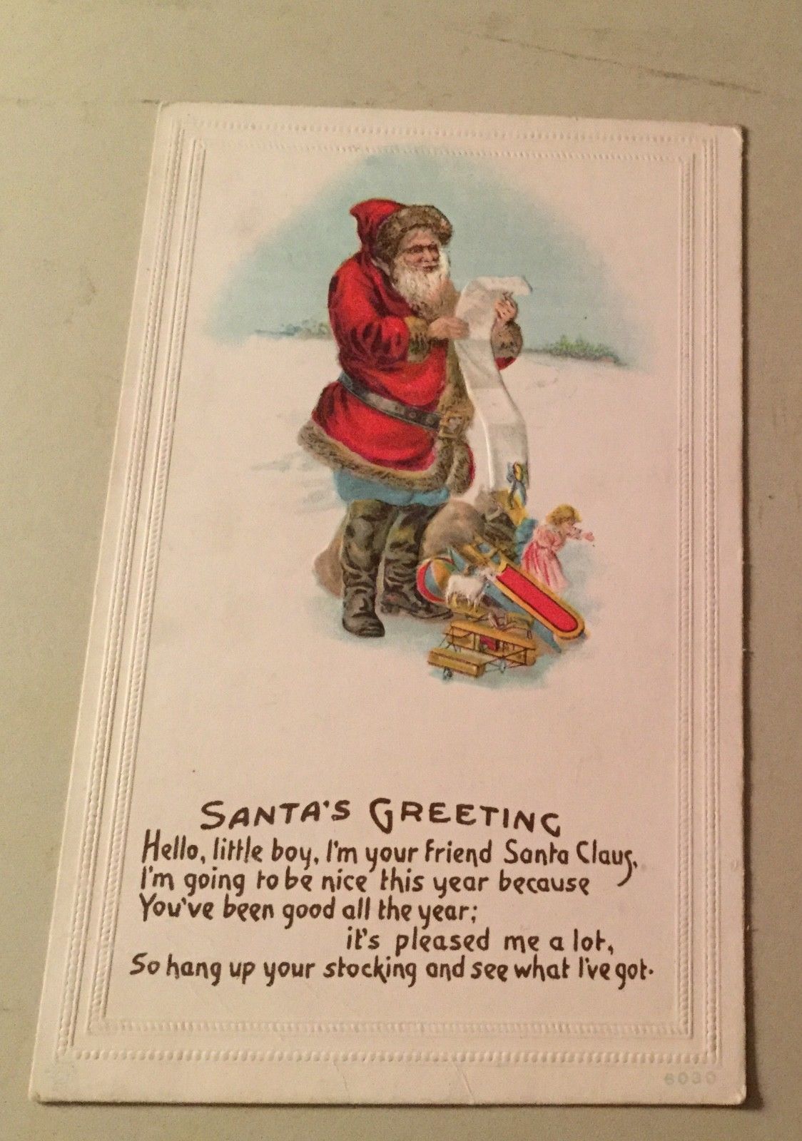 VINTAGE POSTCARD SANTA CHECKING LIST