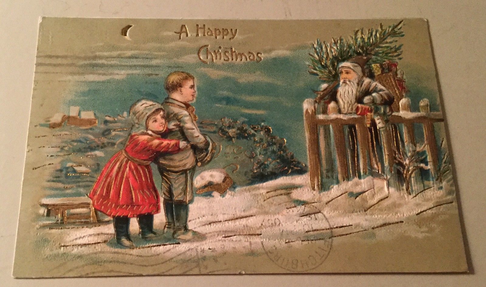 VINTAGE SANTA POSTCARD WITH SANTA AND CHILDREN