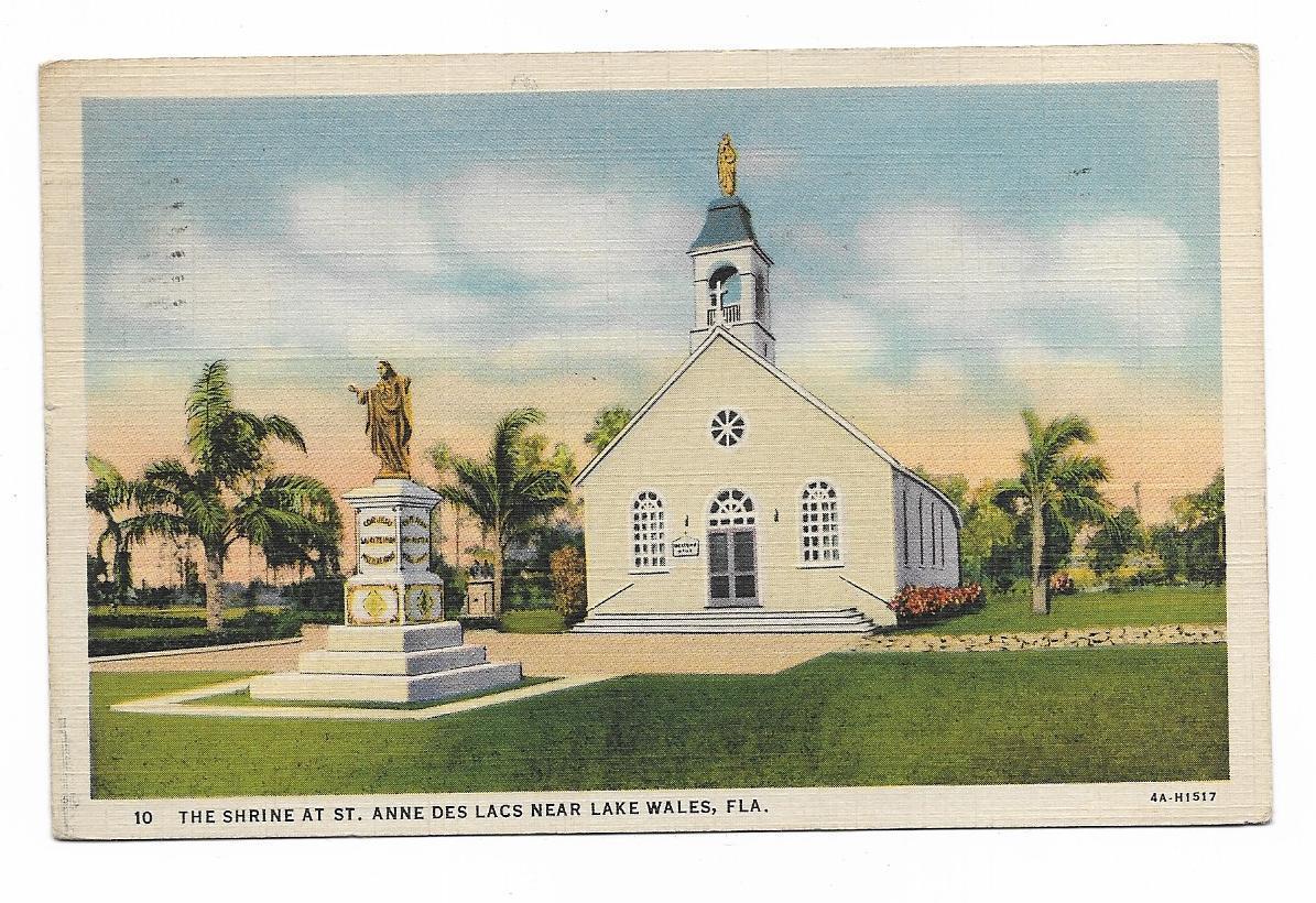 Vintage Florida Linen Postcard Lake Wales Shrine St Anne Des Lacs Monument