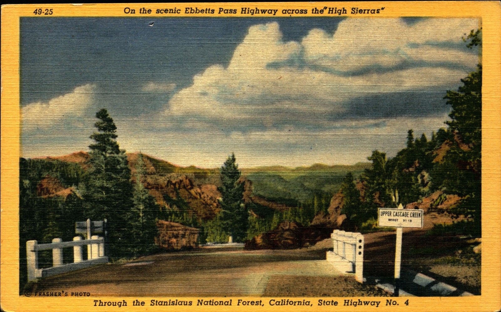Title (ebay affiliate link): STANISLAUS NATIONAL FOREST CA, Ebbetts Pass Hwy, Vintage Postcard CA550978