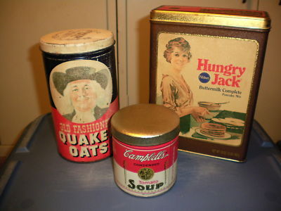 LOT OF 3 TIN COLLECTIBLES QUAKER HUNGRY JACK CAMPBELL