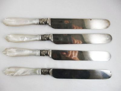 4 Knives Mother of Pearl Handle With Silver Plate Bands 8-3/4" Length