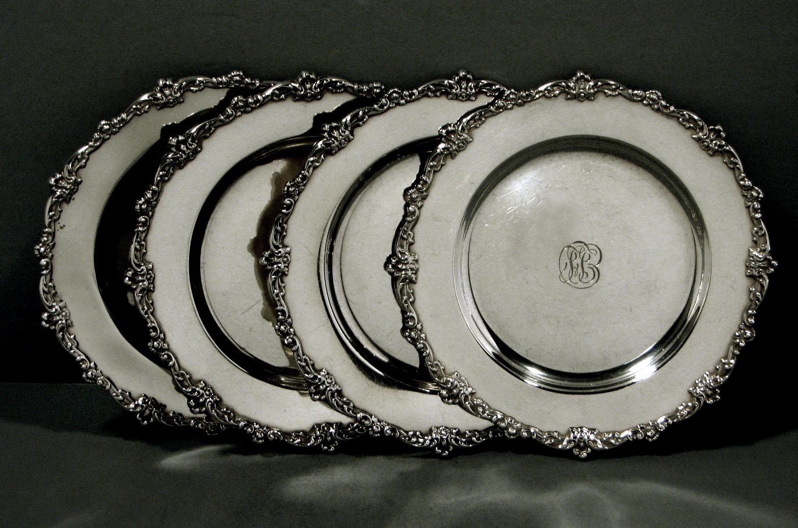Gorham Sterling Plates (4) 1912 " SHELL LEAF & SCROLL "