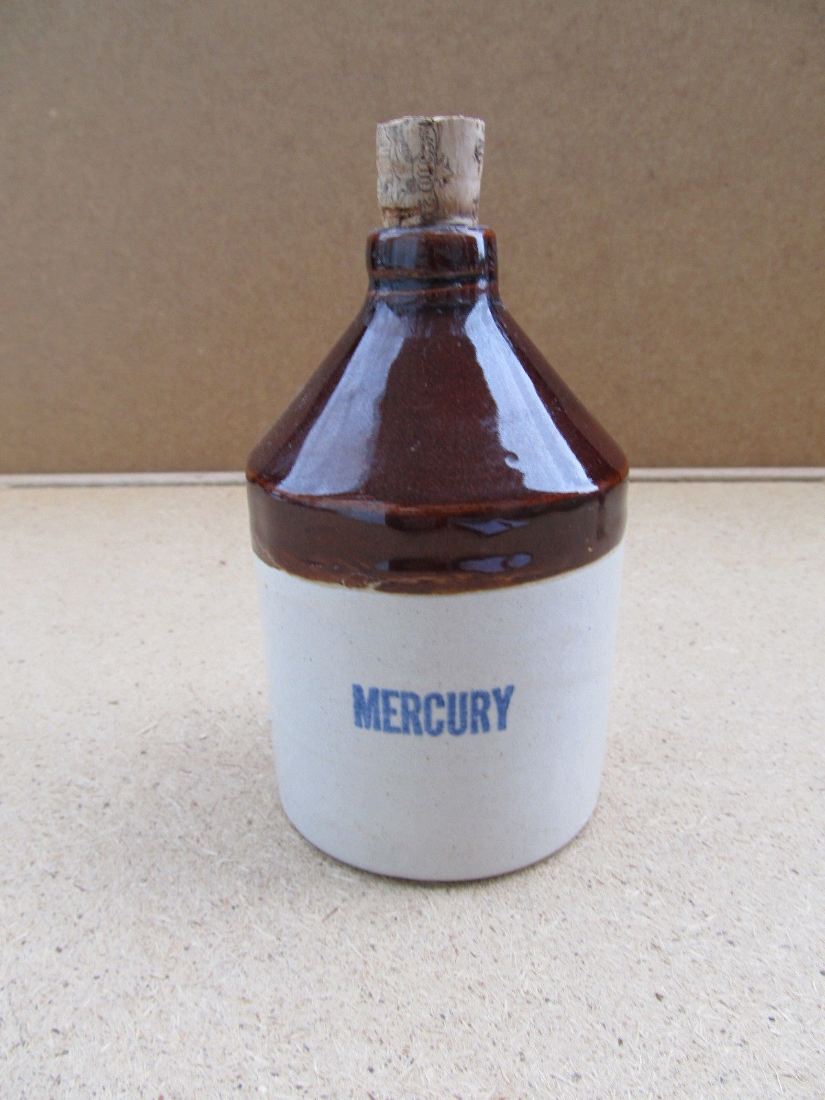 Title (ebay affiliate link): Antique Dental Mercury Stoneware Jug with Cork Stopper