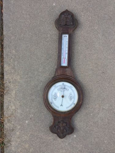 Antique Carved Wall Barometer Thermometer