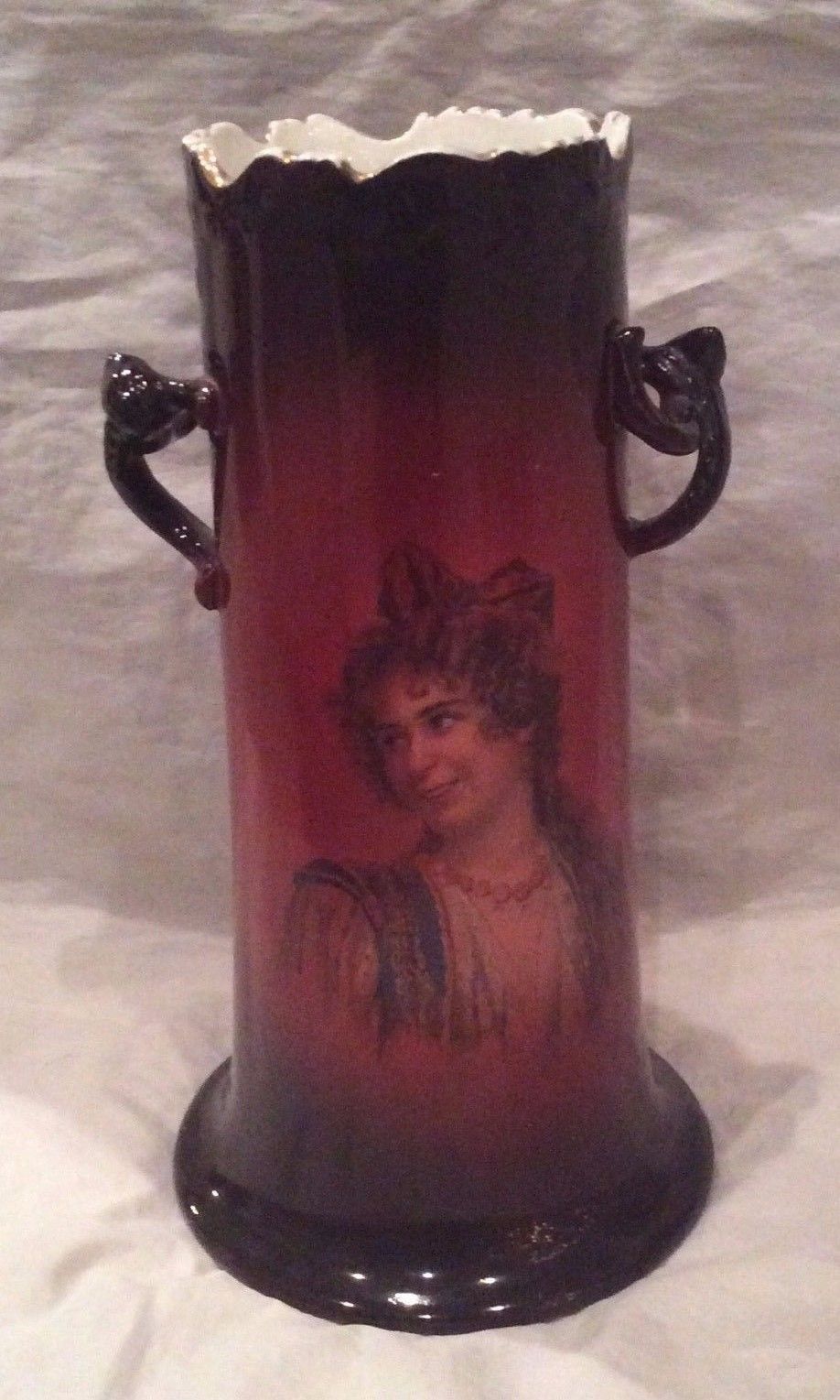C1900 Vintage Warwick Lady Portrait 10 1/2" Tall Head Vase with 2 Handles