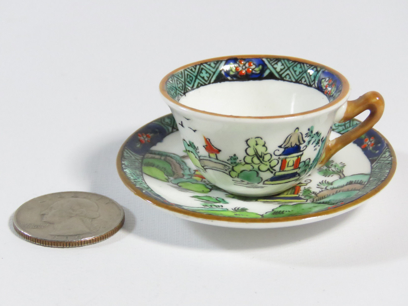 Title (ebay affiliate link): Crown Staffordshire YE OLD WILLOW Tiny CUP & SAUCER Mini Demitasse JAPAN 7/8"