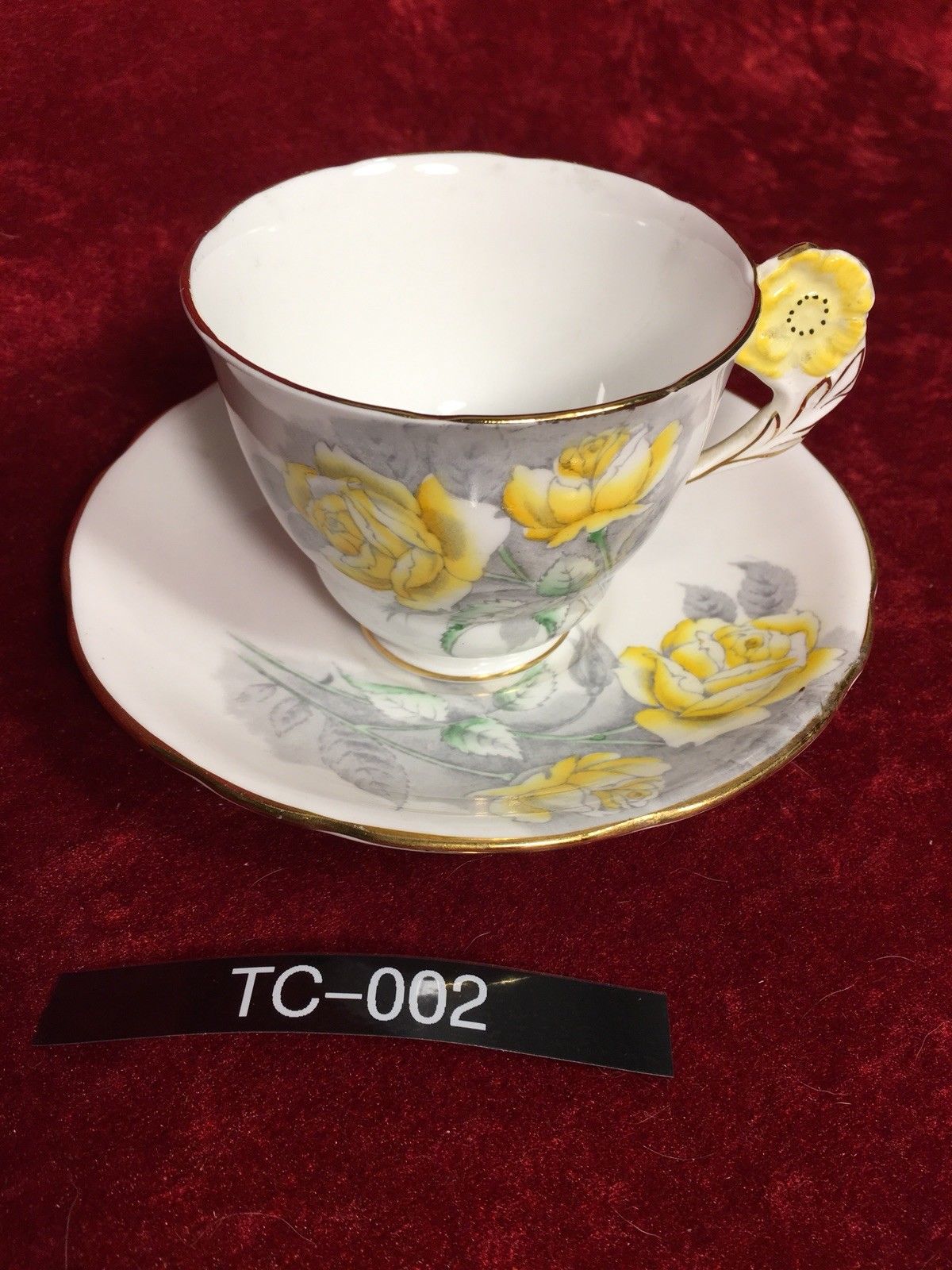 Antique Royal Stafford bone china teacup and saucer, yellow rose design