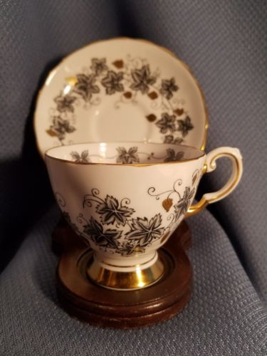 VINTAGE ANTIQUE PORCELAIN TEA CUP SAUCER SET TUSCAN ENGLAND BLACK
