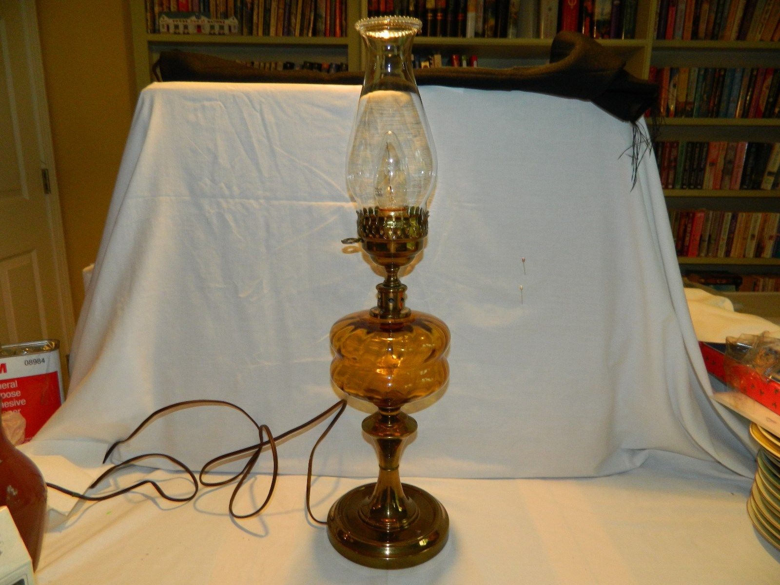 VINTAGE AMBER GLASS OIL LAMP CONVERTED TO ELECTRIC