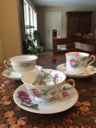 Vintage lot of 3 tea cups and saucers, Roses And More!